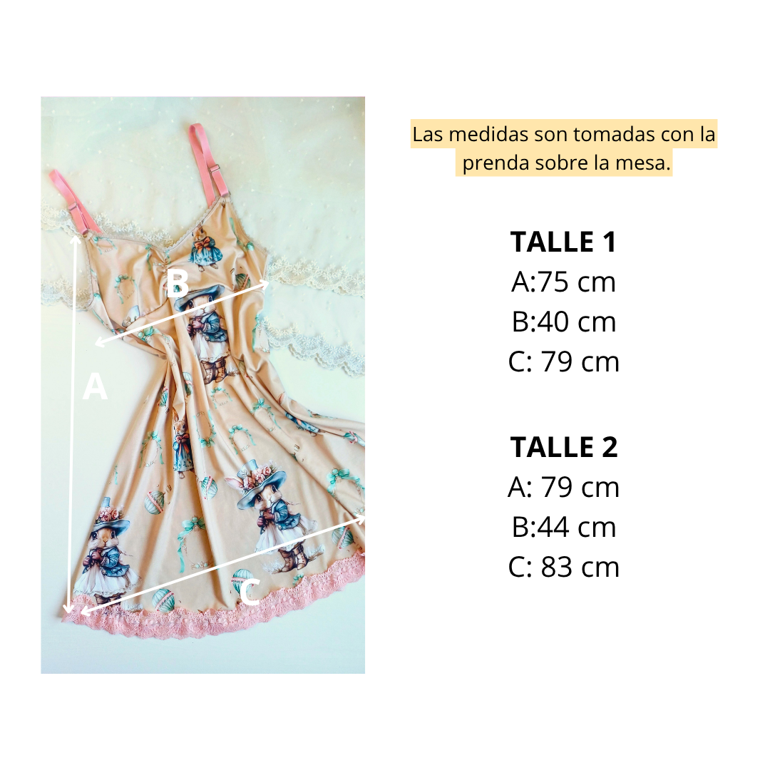 Baby doll confeccionado en algodón fino estampado de conejos sobre fondo manteca.